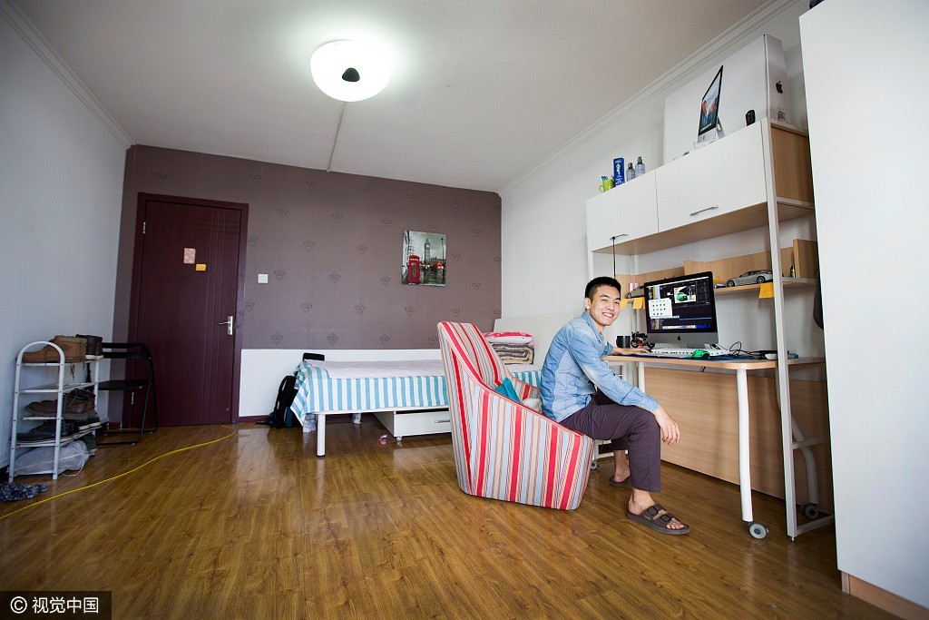 韵鑫,24岁,来自山西太原。去年毕业于山西传媒学院,2016年8月份来到北京,因为这里有更多的就业机会,现在从事汽车行业的影视后期工作,每月收入6000元。韵鑫居住在顺义区怡馨家园一个单间里,房租1800元/月。他刚来北京时,先住在朋友那里,后来在手机上用租房APP找到了现在的住所。平常在家剪辑视频,最大的爱好就是空闲时间看看电影、打打游戏。 “对现在居住环境和工作还算满意,一个人没有拘束,生活比较自由。”(图片来源:视觉中国)