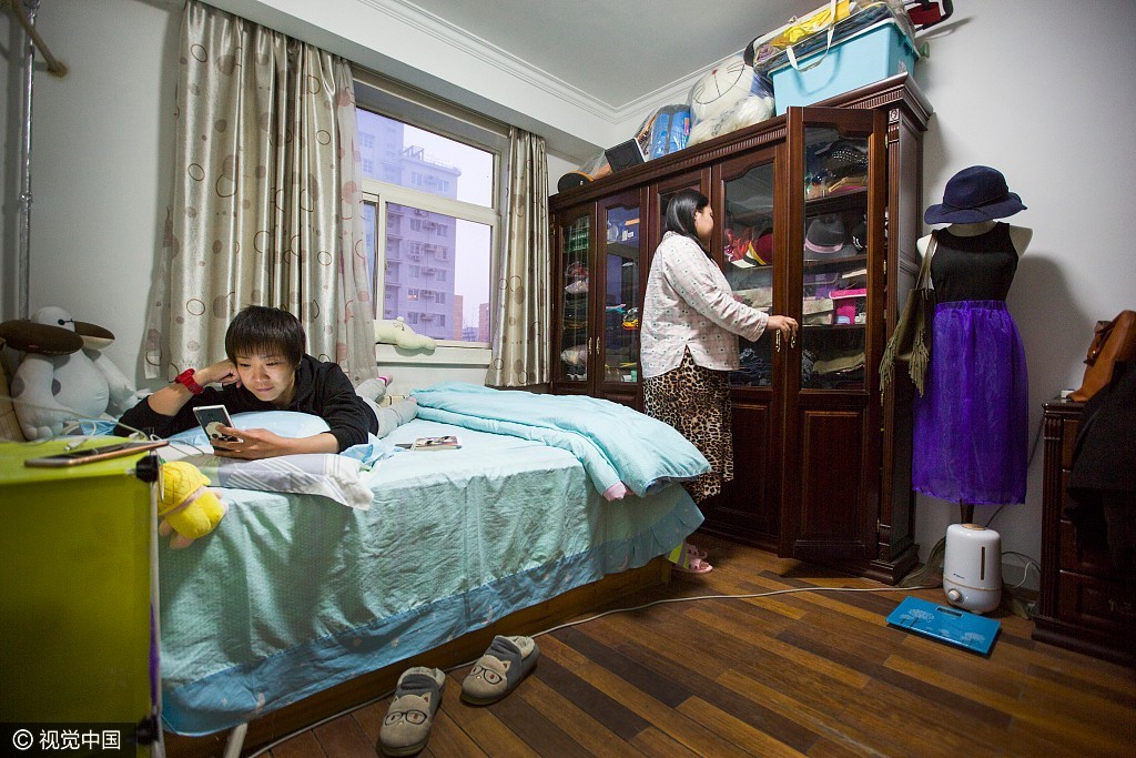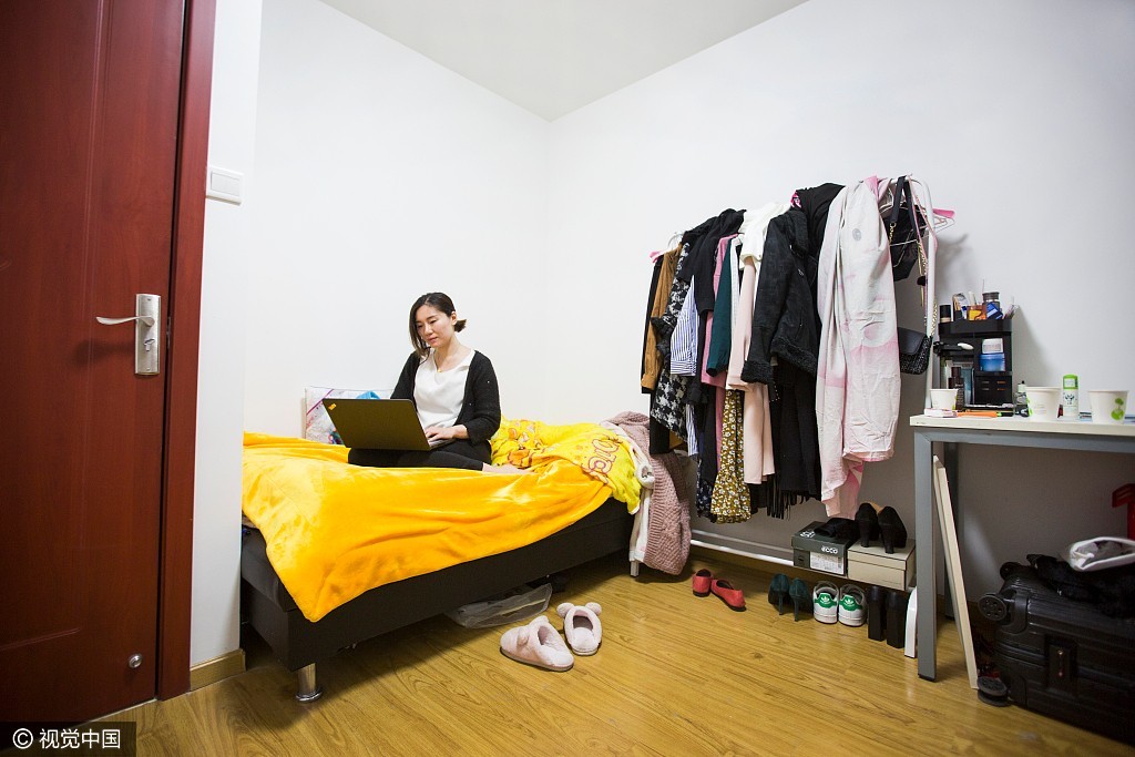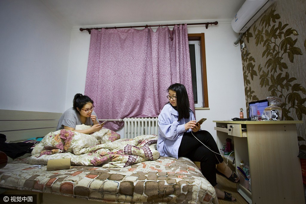 秦宇婷(右一),24岁,来自山西太原。去年7月份毕业,目前是一名服装设计师,妹妹秦宇琪从事美容行业,两人月收入合计8000元,居住在丰台区德鑫嘉园小区,房租1750元/月。因为工作地点比较远,宇婷每天都要赶最早班的地铁,等8月租约到期后,会考虑换个近一些的住所。 “找房子比找工作还心累,每月要花掉一半的工资用来租房,遇到好的房东真的非常困难。”(图片来源:视觉中国)