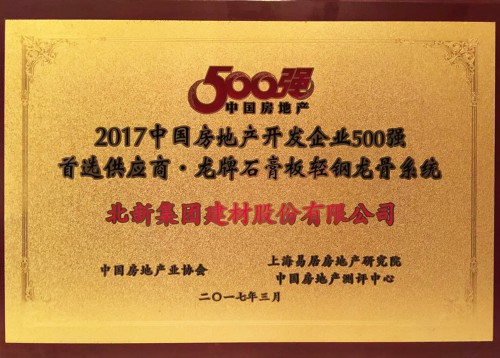 龙牌”石膏板轻钢龙骨系统荣膺“2017中国房地产开发企业500强首选供应商”