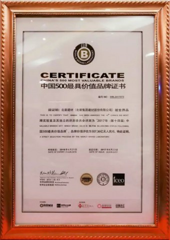 6月22日,世界品牌实验室(World Brand Lab)发布了2017年《中国500最具价值品牌》分析报告,北新建材与腾讯、海尔、华为、阿里巴巴等一同入围2017年度“中国500最具价值品牌“。这也是北新建材连续第9年荣登该榜单,2017年品牌价值达507.36亿,名列中国500最具价值品牌榜第73位,进入品牌价值500亿级阵营。