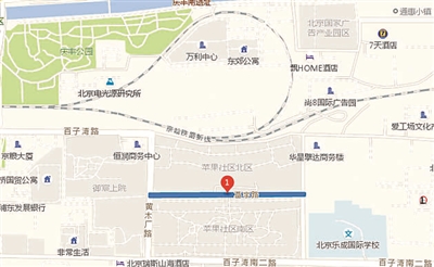 记者根据地图指示来到现场进行探访,发现这条路东西走向,是朝阳区百子湾路和百子湾南二路之间的一条道路,西接黄木厂路,东接九龙山路,将苹果社区分为北区和南区两部分。这条路双向通车,步行不到十分钟即可走完。