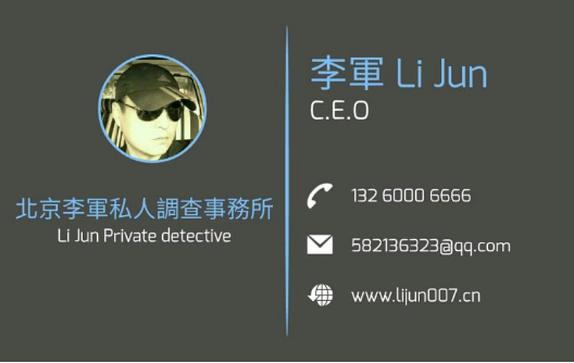李军私人侦探事务所事务所联李军先生是最早涉足私家侦探的元老之一。一般人对于私家侦探停留在抓奸的印象中,但这并不是唯一的项目,李军先生早年复员分配就职于特殊的保密部门,长期从事保密调查工作,因此积累了各种有利于调查的经验和资源。随着第一波下海大潮的涌起而辞职后从事了为私人提供合法调查业务。嫉恶如仇是李军先生的秉性,但伸张正义,忠心耿耿维护客户的合法权益才是成立李军私人调查事务所的目的。