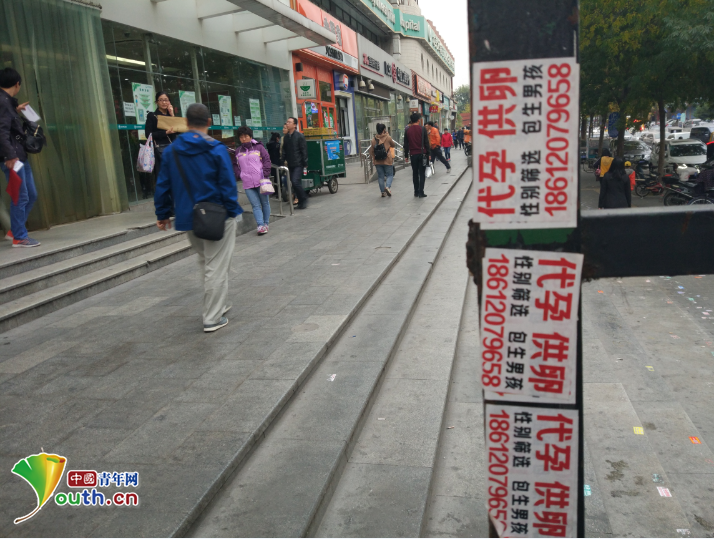 北京大学第三医院生殖中心门前小广告表示提供“性别筛选”,“包生男孩” 中国青年网记者吴阳 摄