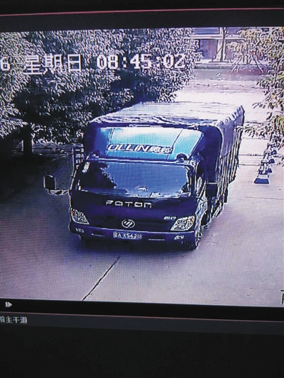 监控拍下取货的厢车,车身无物流公司标识。图/受访者供图
