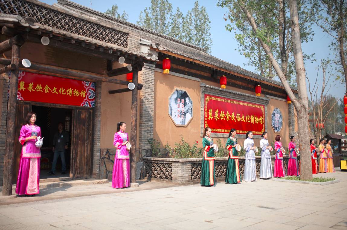 博物馆外12名“菜模”手捧直隶名菜屹立两边,迎接各位领导莅临参观“冀菜饮食民俗文化博物馆”。